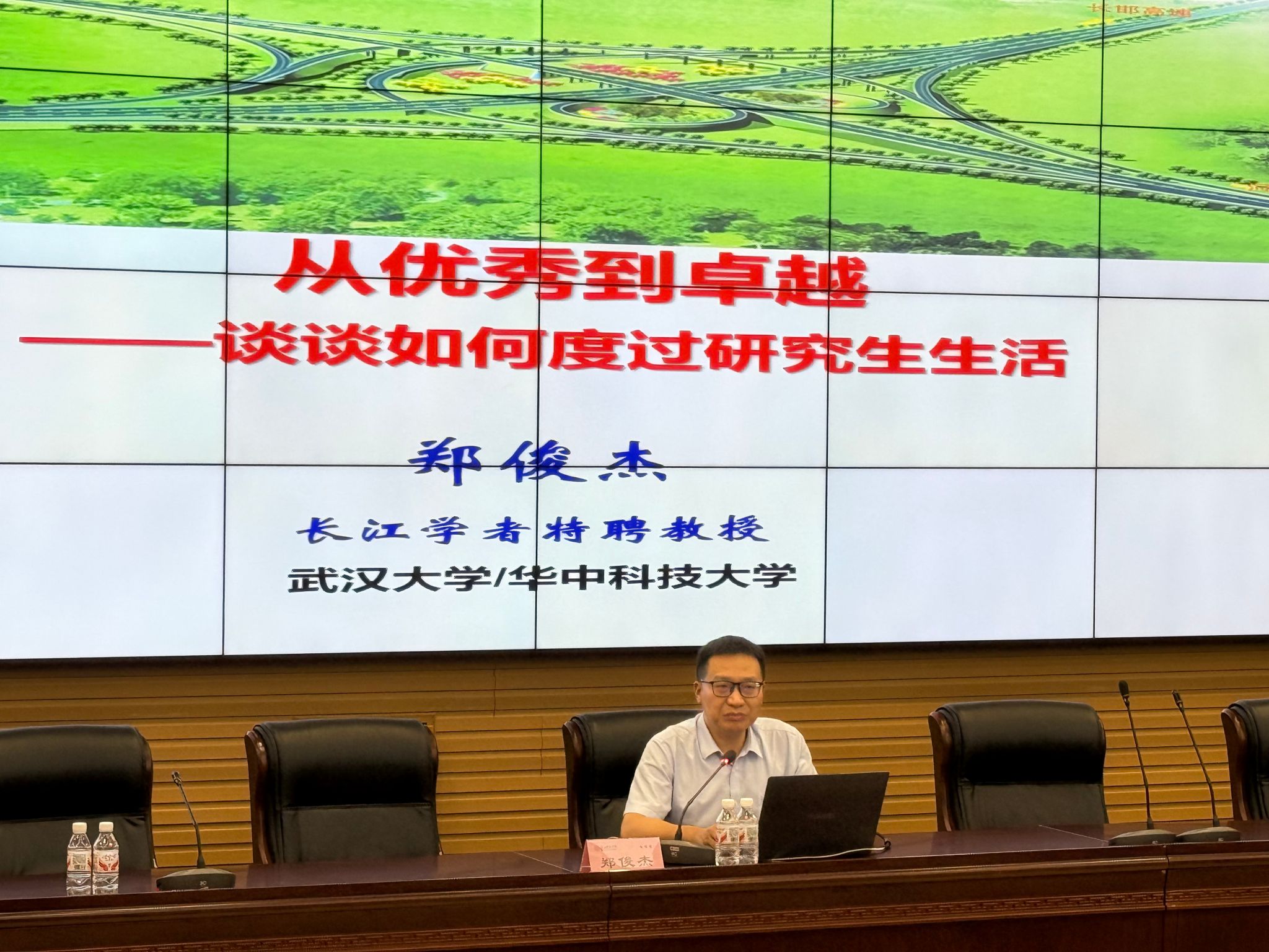 为引导2025级研究生新生科学规划学业生涯,尽快适应研究生生活节奏,迈向卓越成长之路,9月16日下午,我校特邀长江学者、武汉大学二级教授郑俊杰教授,在图书馆报告厅作题为《从优秀到卓越——谈谈如何度过研究生生活》的专题入学教育讲座。本次讲座由研究生处副处长周建存主持,200余名新生齐聚一堂,聆听名师教诲,汲取前行力量。